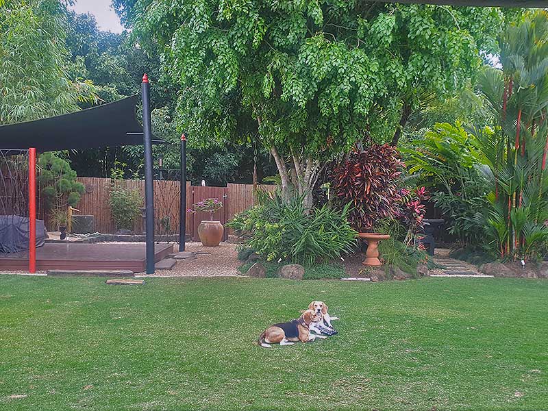 Dog friendly garden landscaping Cairns is something we specialise in at Garden Art Landscapes. Why? We love dogs! Owner Marie Jenkins has two beagles, who love roaming around and exploring her garden. There’s two aspects to our dog friendly garden landscaping Cairns services; design and plant and secondly, provide advice on safe products to use.